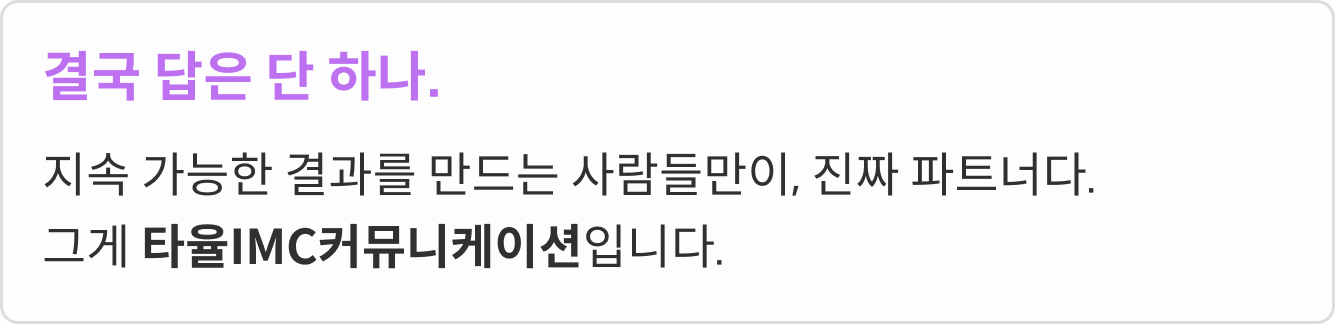 지속 가능한 결과를 만드는 사람들만이, 진짜 파트너다.그게 타율IMC커뮤니케이션입니다.